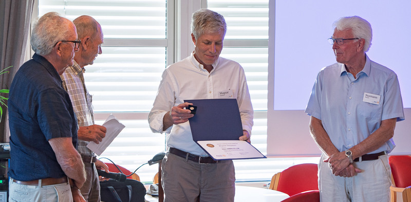 Magnar Danielsen mottar utmerkelsen til Paul Harris Fellow, med diplom og nål.