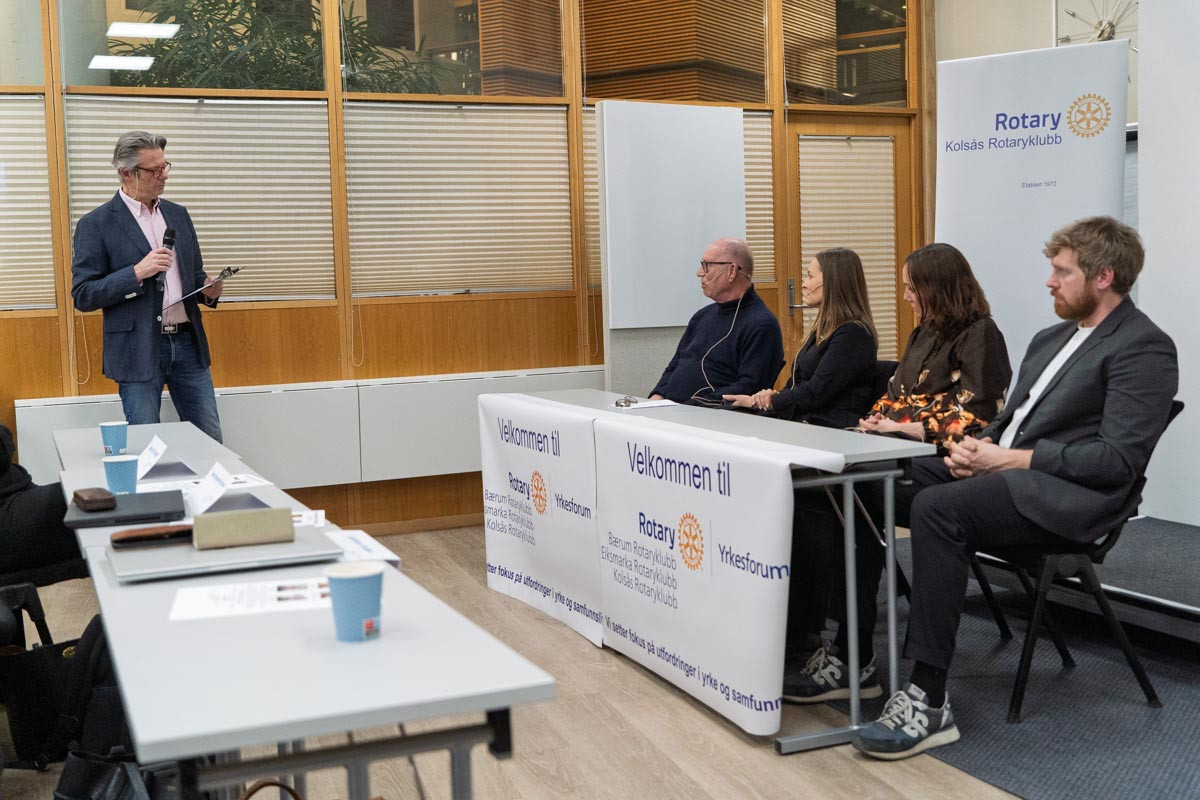 Fra utenforskap til framtidstro for ungdom som faller ut av skole eller ikke kommer inn på arbeidsmarkedet. Det var temaet for det åpne møtet i Rotary Yrkesforum i Norconsults lokaler i Sandvika 24. mars 2026 . NAV Bærums Ungdomsavdeling jobber for økt inkludering og redusert utenforskap. Flere Hender og Fremtidens Skole har som forretningside å gi ungdom som har falt utenfor en mulighet og en vei inn i arbeidslivet. NAV Bærum og de to foretakene fortalte om sine tiltak og erfaringer på området utenforskap. Etter avsluttende paneldebatt og spørsmål fra salen kom mulige tiltak opp: NAV Bærum vurderer å styrke bemanningen i ungdomsavdelingen og etablere program med finansiering for enklere å få ungdom i jobb basert på konseptet «Et enklere NAV». Lederen av Unge i Jobb under ARBA, en kommunal integreringsbedrift i Bærum, etterlyste praksispenger til unge under 18 år som vil jobbe, men ikke uten lønn, hvilket er et bevilgningsspørsmål. Flere Hender pekte på at NAV sammen med kommunene må ta ansvar for å få flere inn i omsorgssektoren; det forutsetter økte bevilgninger, men det vil redusere sykefraværet i omsorgssektoren. Videre bør ufaglærte jobber i større grad tildeles de som står utenfor arbeidslivet. Fremtidens Skole pekte på at anleggsbransjen i Norge med 60.000 bedrifter tar sikte på å ta inn 2000 ansatte årlig fra denne gruppen, men det krever offentlig finansieringsbidrag.